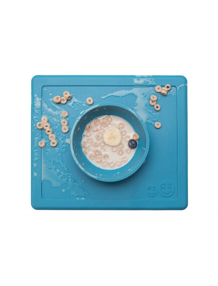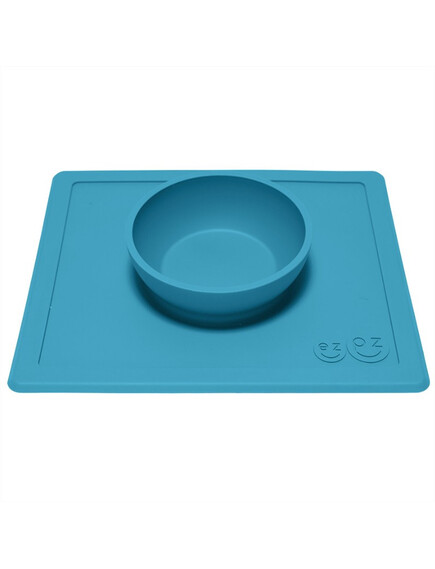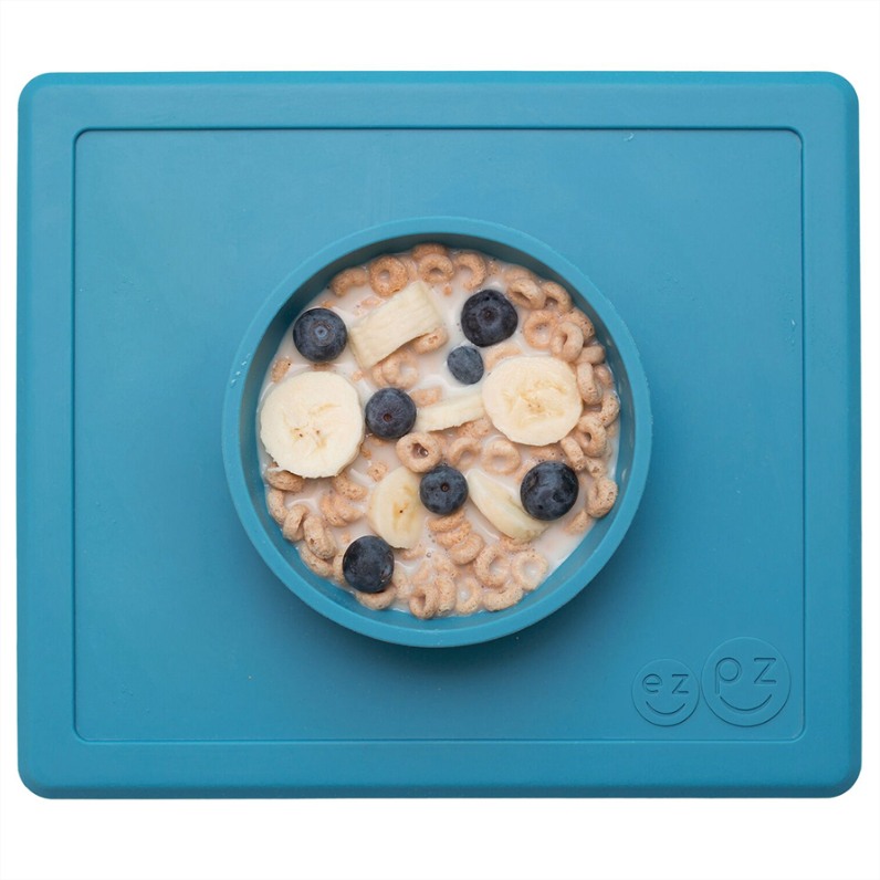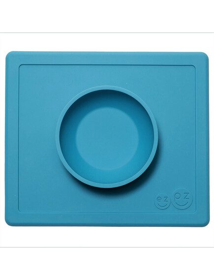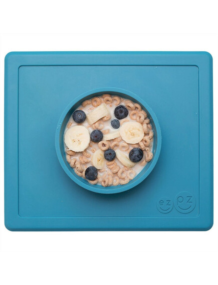 Ezpz: Обучителна силиконова купа с вградена вакуумна подложка, създадена от педиатър специалист по храненето и подходяща за ЗВБ за 24+ месеца - Happy Bowl Blue