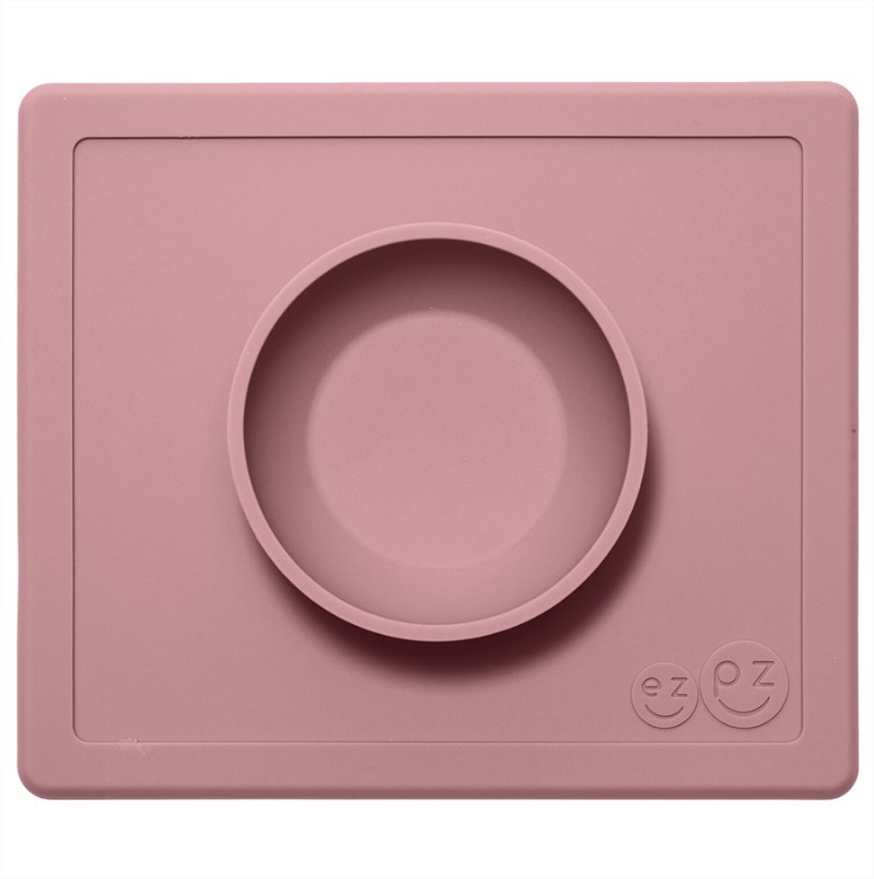 Ezpz: Обучителна силиконова купа с вградена вакуумна подложка, създадена от педиатър специалист по храненето и подходяща за ЗВБ за 24+ месеца - Happy Bowl Blush
