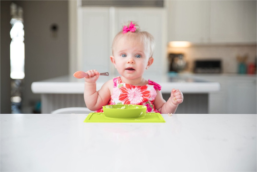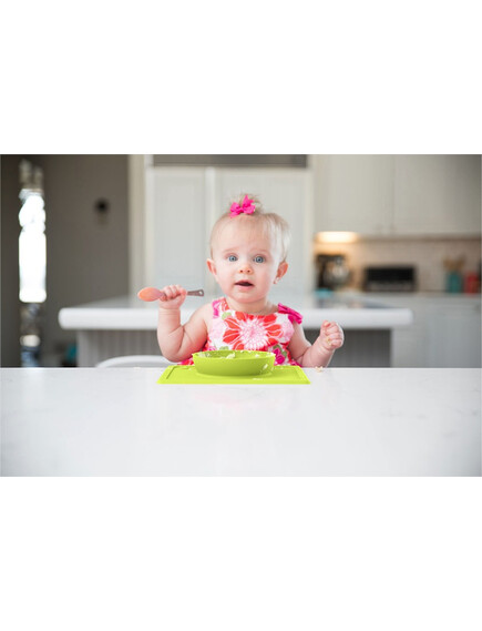 Изработена е от 100% силикон, а подносът в долната част прилепва плътно за към плота, което гарантира, че подложката няма да се плъзга. Така че - по-малко бъркотия в кухнята! Дори когато детето разсипе храната си, по-голямата част ще остане върху подложката. Например - ето как започва едно хранене и как завършва.