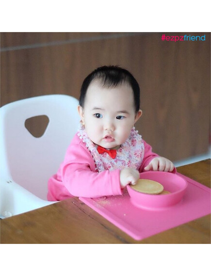 Ezpz Обучителна силиконова мини купа с вградена вакуумна подложка, създадена от педиатър специалист по храненето и подходяща за ЗВБ за 12+ месеца Mini Bowl Pink