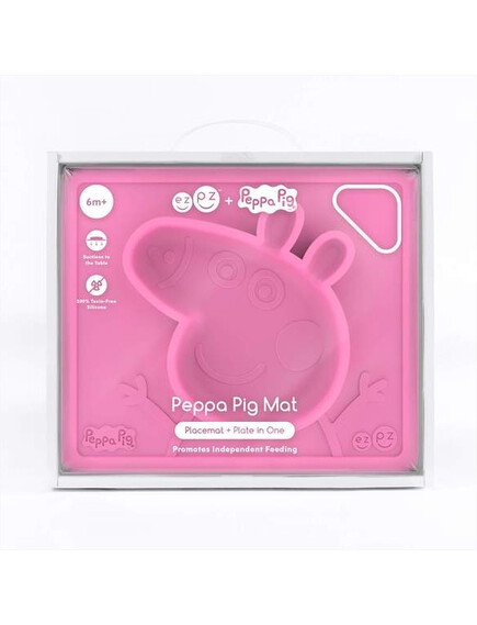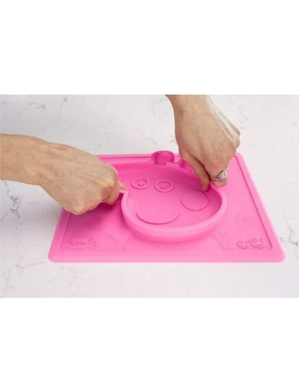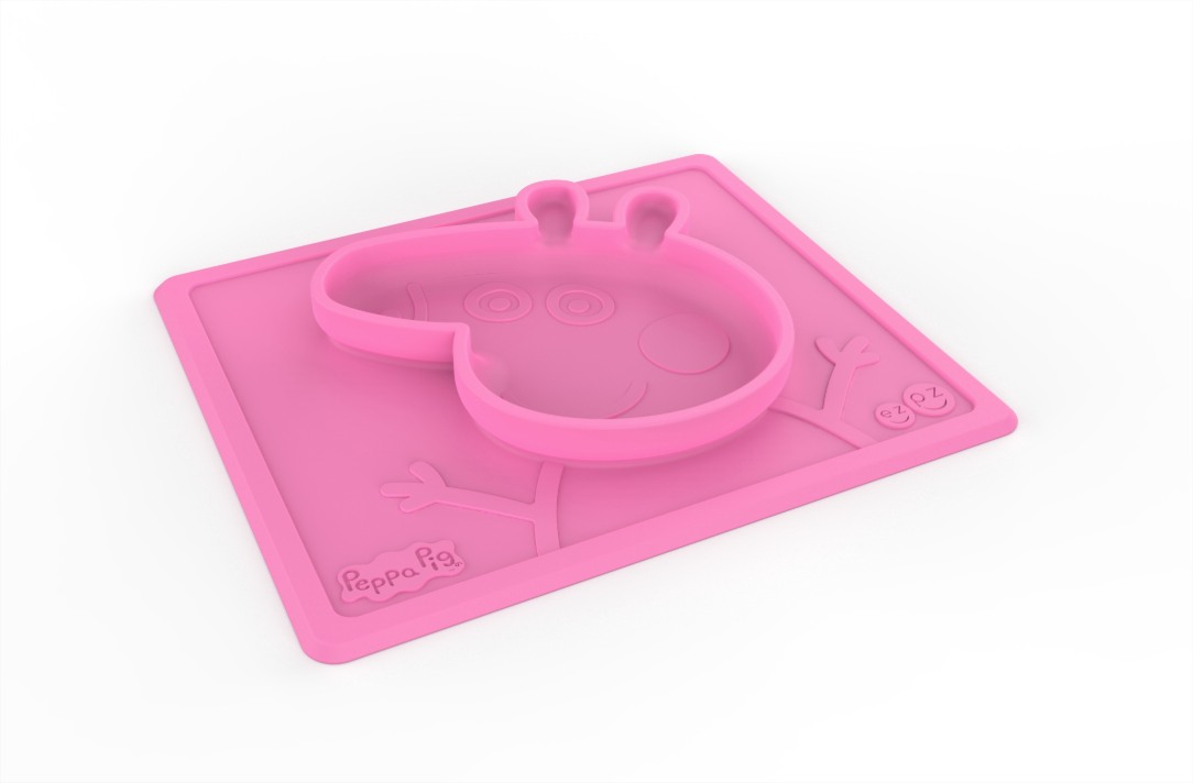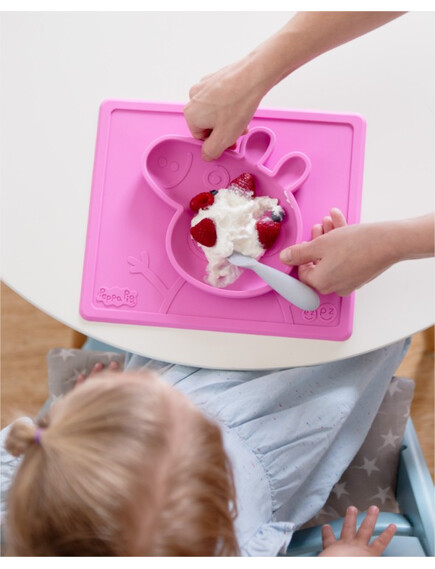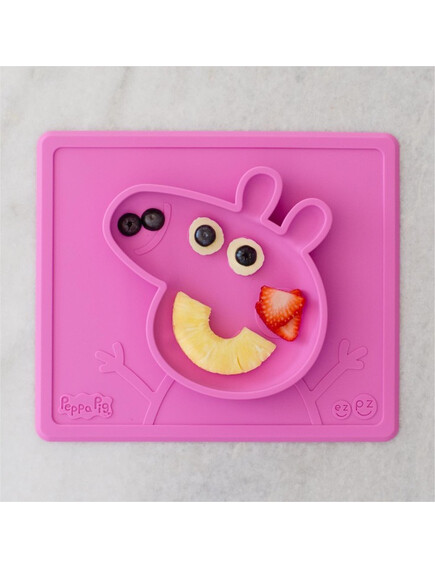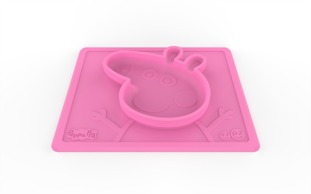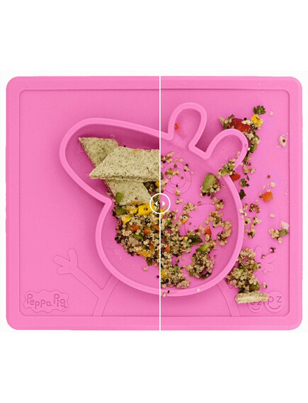 Подложката на Ezpz - Peppa Pig е "всичко в едно" - табла + купичка. Тя е предназначена да улесни детското хранене, като го направи по-малко хаотично и проблемно и по-забавно! Подложките са изработени от 100% чист силикон, подходящ за храна и гарантиращ, че подложката ще остане задраво "залепнала" за масата и няма да се пързаля и разлива.