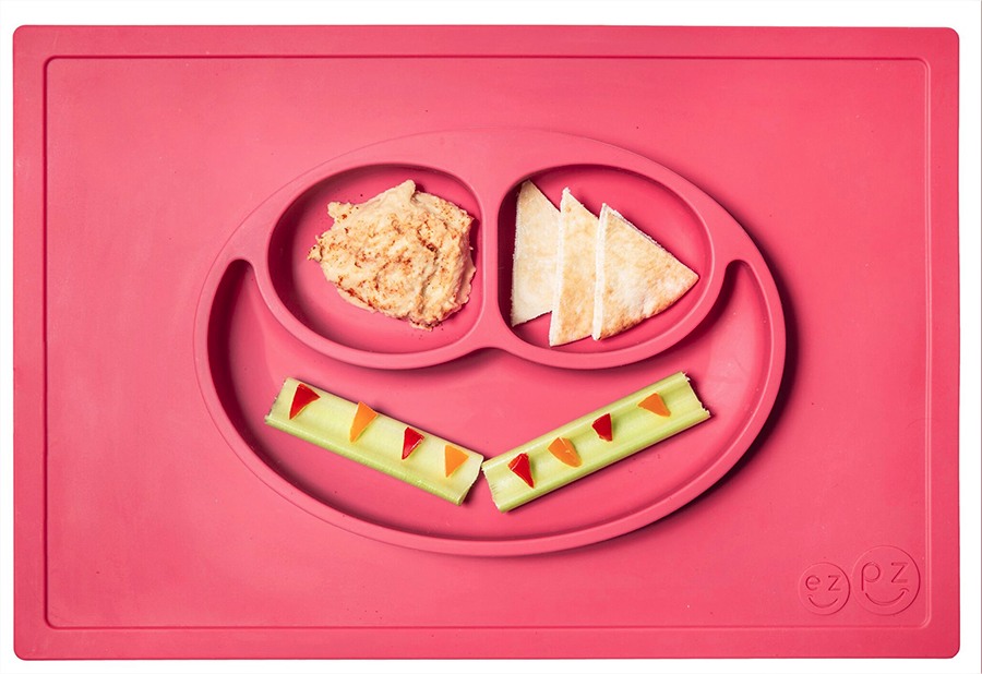 Ezpz: Обучителна силиконова подложка за хранене създадена от педиатър специалист по храненето и подходяща за ЗВБ за 24+ месеца - Happy mat Coral