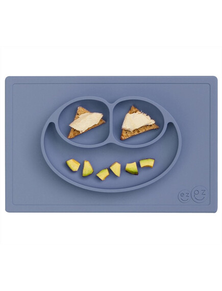 Ezpz: Обучителна силиконова подложка за хранене създадена от педиатър специалист по храненето и подходяща за ЗВБ за 24+ месеца - Happy mat Indigo