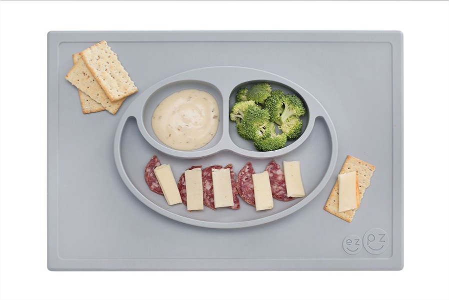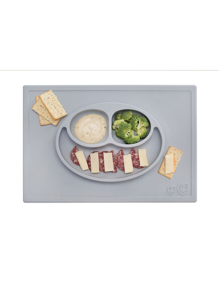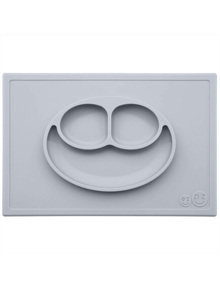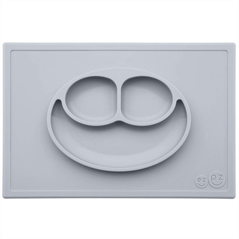 Ezpz: Обучителна силиконова подложка за хранене създадена от педиатър специалист по храненето и подходяща за ЗВБ за 24+ месеца - Happy mat Pewter