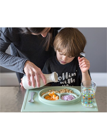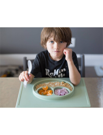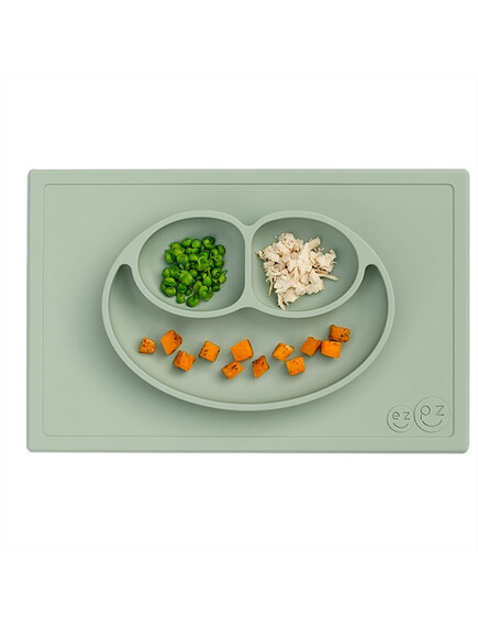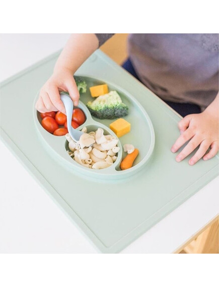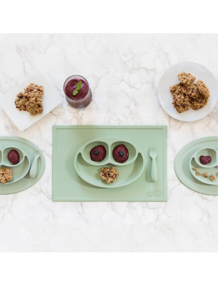 Ezpz: Обучителна силиконова подложка за хранене създадена от педиатър специалист по храненето и подходяща за ЗВБ за 24+ месеца - Happy Mat Sage