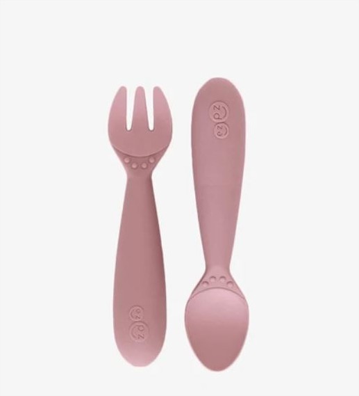 Вилицата и лъжицата са проектирани от педиатър специалист по хранене и са изработени от мек силикон , който предпазва зъбите на бебето и му помага да се храни безопасно самостоятелно .