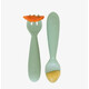 Вилицата и лъжицата са проектирани от педиатър специалист по хранене и са изработени от мек силикон , който предпазва зъбите на бебето и му помага да се храни безопасно самостоятелно .