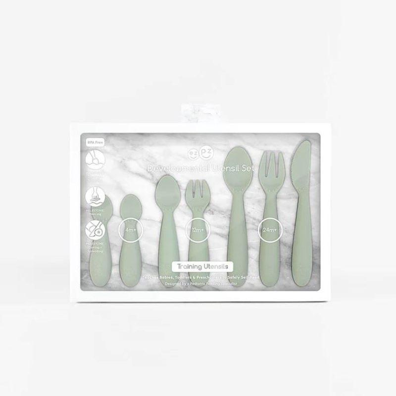 Ezpz:Сет от 7 броя обучителни прибори , създадени от педиатър специалист по храненето (4-12-24+ Месеца) - Sage