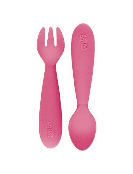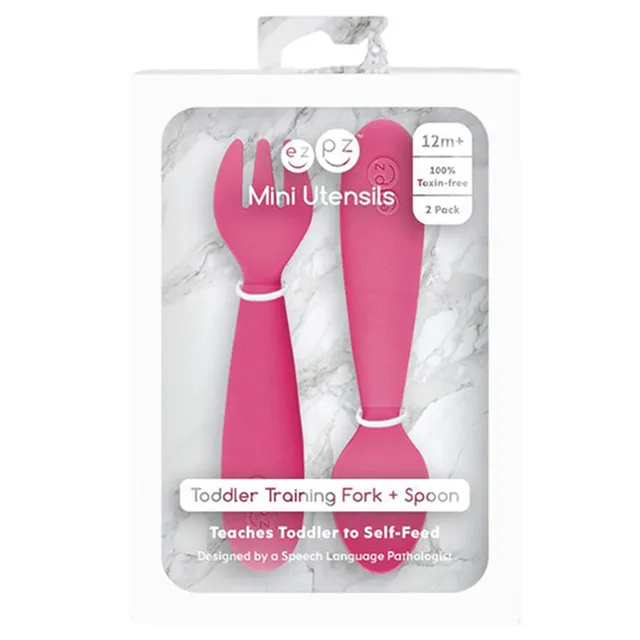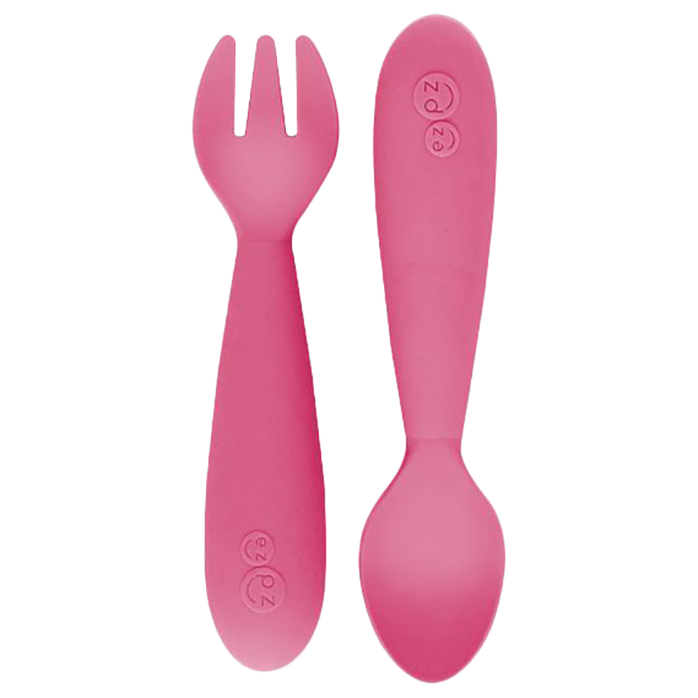 Ezpz: Тренировъчна лъжица и вилица, създадени от педиатър специалист по храненето и подходящи за ЗВБ, 12+ месеца - Pink