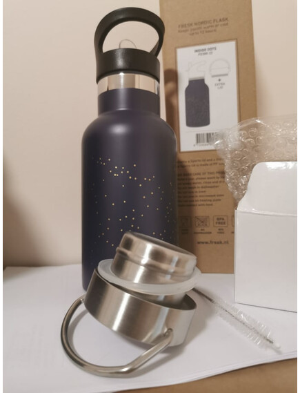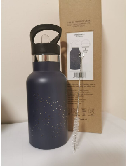 Fresk: 2 в 1 Бутилка и термос от неръждаема стомана с вградена сламка 350мл - Dots Indigo