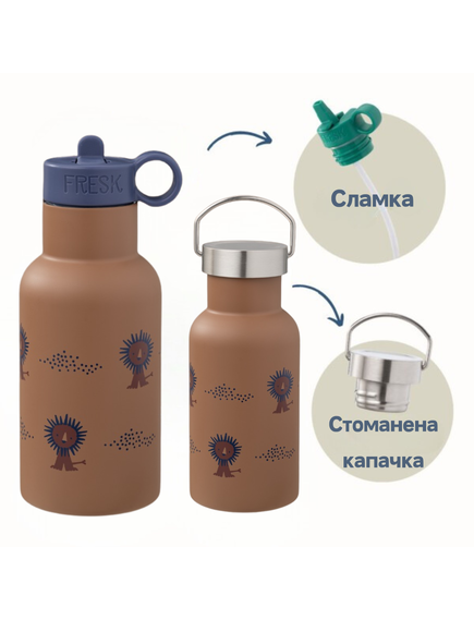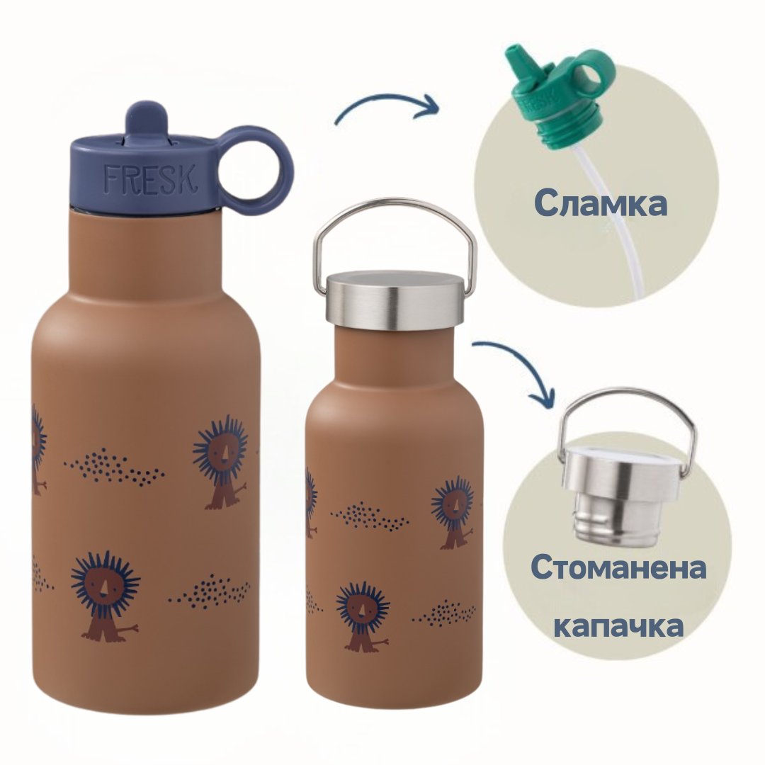 - всеки термос върви с две различни капачки - една със сламка и една стандартна;