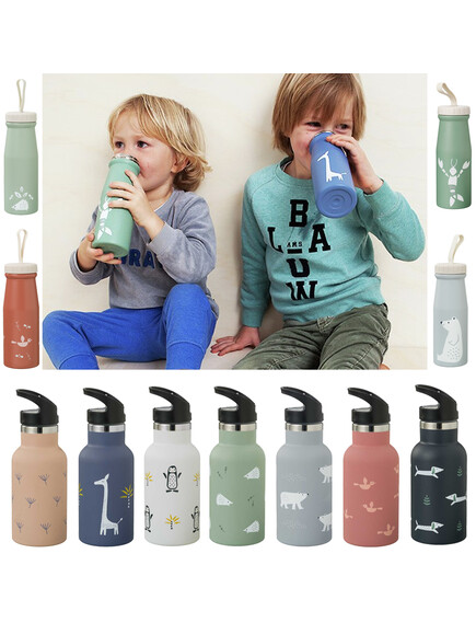 Идеален за деца, термосът е с вградена сламка и лесно се превръща в удобна и лесна за използване бутилка. За училище или разходка, с две различни капачки. Той има двойна стена от неръждаема стомана и държи вашата напитка топла или студена в продължение на много часове.