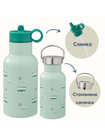 Fresk : 2 в 1 Бутилка и термос от неръждаема стомана с вградена сламка 350мл - Surf Boy