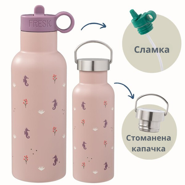 - всеки термос върви с две различни капачки - една със сламка и една стандартна.