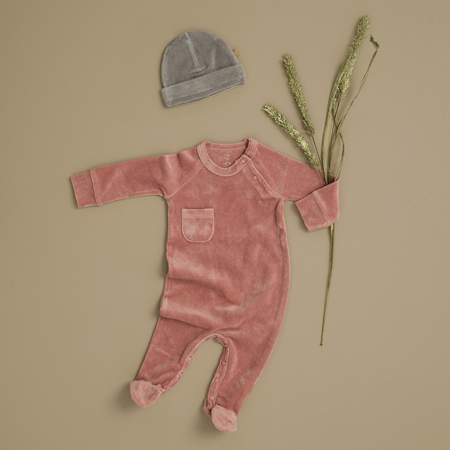 Fresk: Цяла пижама с ританки от кадифе и органичен памук - Ash rose