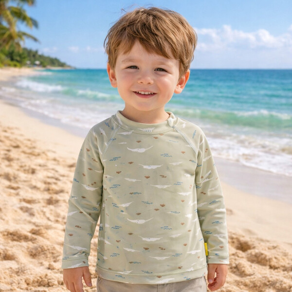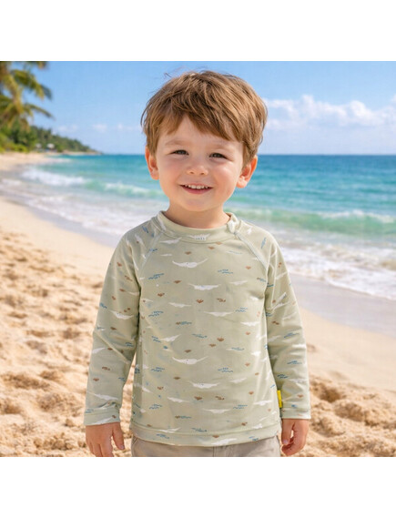 Благодарение на UV50 защитата блузката предпазва чувствителната бебешка кожа от слънцето. В допълнение, издръжливият материалдългите ръкави и късата изправена яка осигуряват допълнителна защита от слънцето.