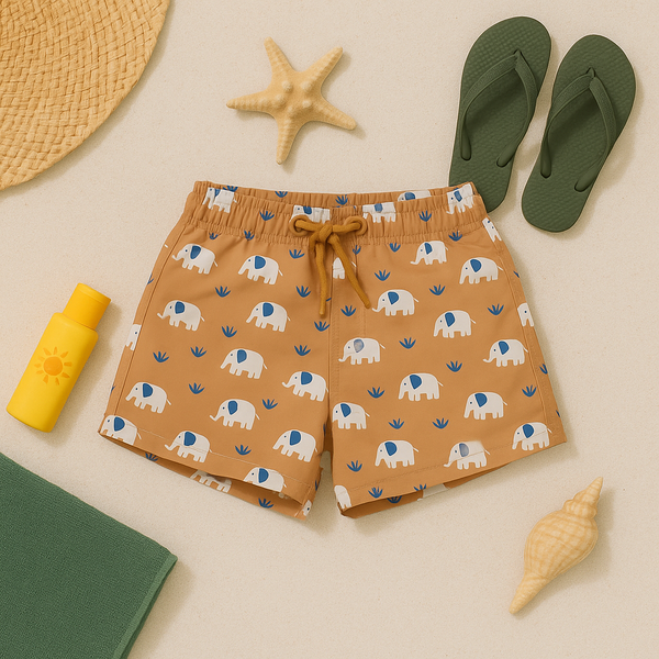 Детски плувни шорти с UV50 защита, произведени от рециклиран найлон.