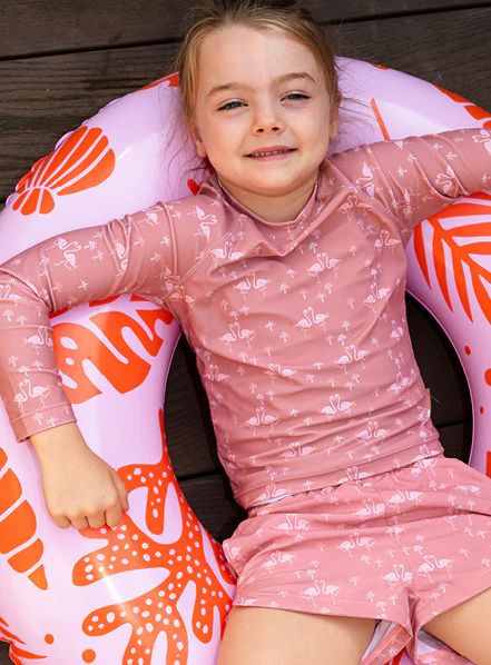 Детски плувни шорти с UV50 защита, произведени от рециклиран найлон.