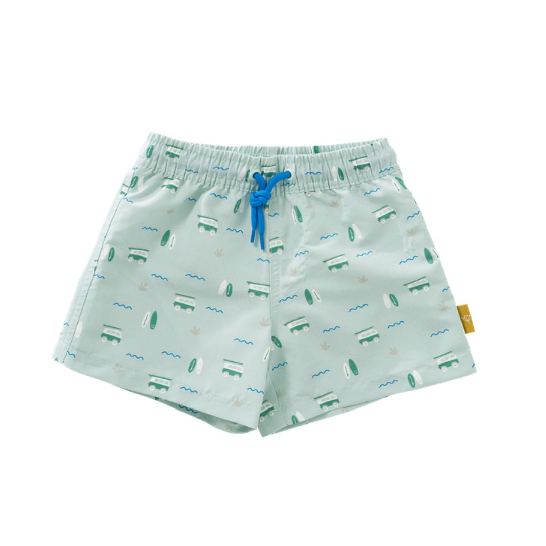 Детски плувни шорти с UV50 защита, произведени от рециклиран найлон.