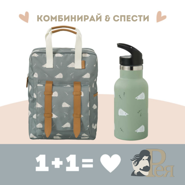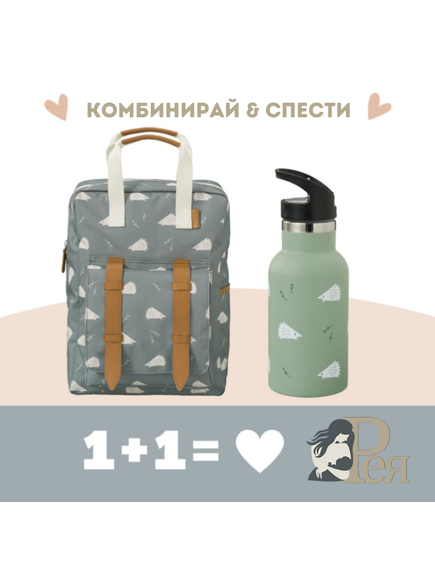 Fresk: Голяма раница 36x26 см + 2 в 1 Бутилка и термос от неръждаема стомана с вградена сламка 350мл - Hedgehog