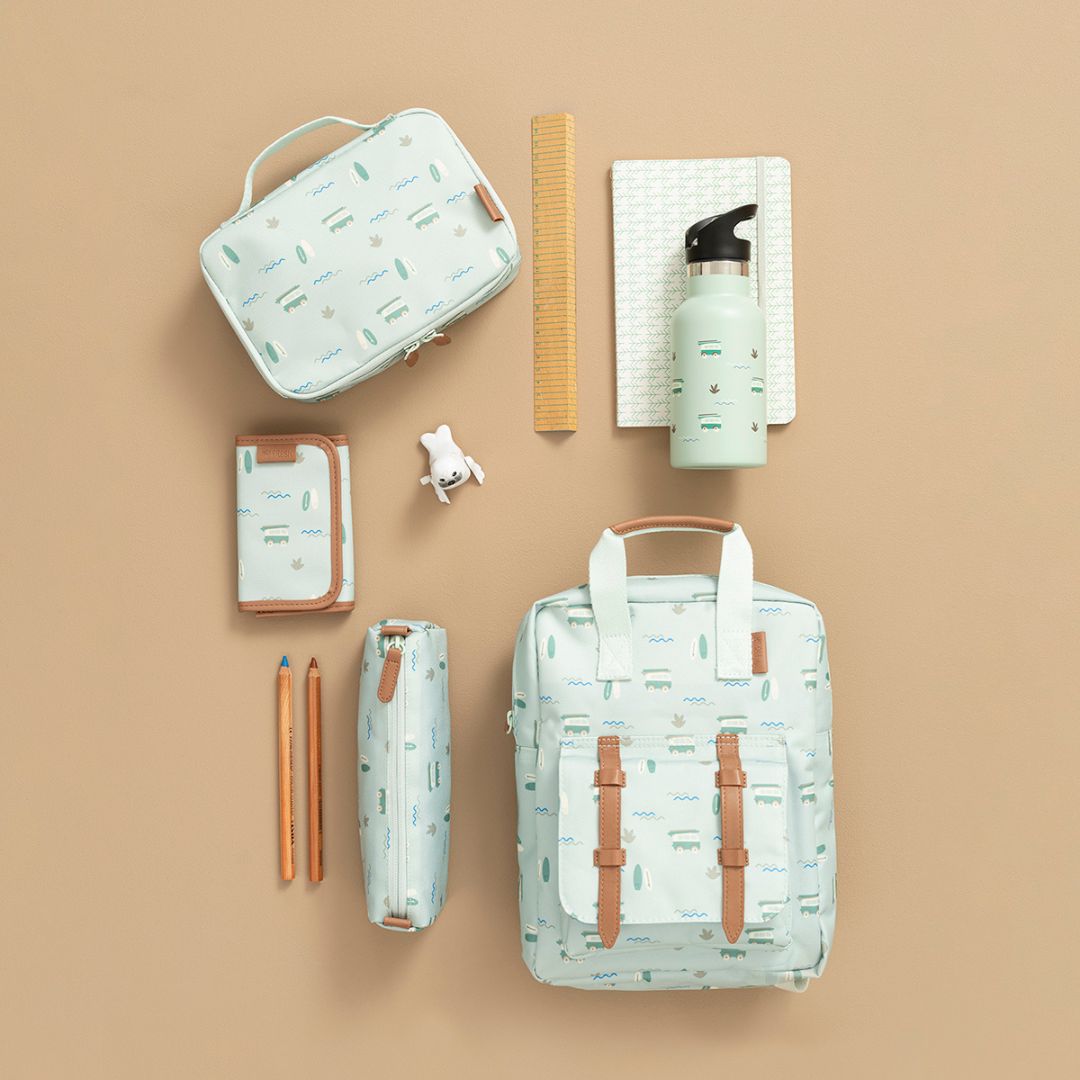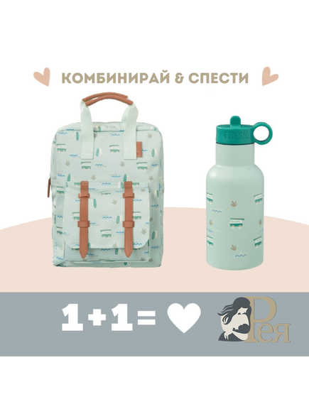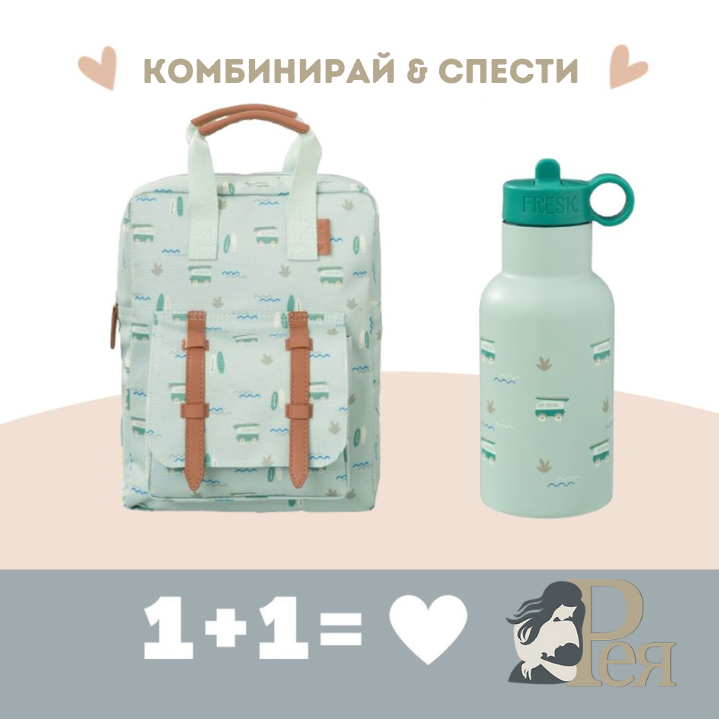 Fresk: Голяма раница 36x26 см + 2 в 1 Бутилка и термос от неръждаема стомана с вградена сламка 350мл - Surf Boy