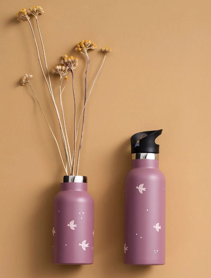 Идеален за деца, термосът е с вградена сламка и лесно се превръща в удобна и лесна за използване бутилка. За училище или разходка, с две различни капачки. Той има двойна стена от неръждаема стомана и държи вашата напитка топла или студена в продължение на много часове.