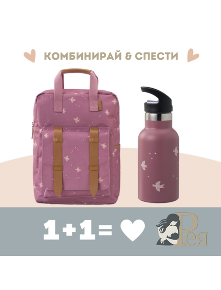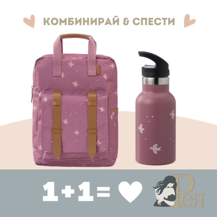 Fresk: Голяма раница 36x26 см + 2 в 1 Бутилка и термос от неръждаема стомана с вградена сламка 350мл - Swallow