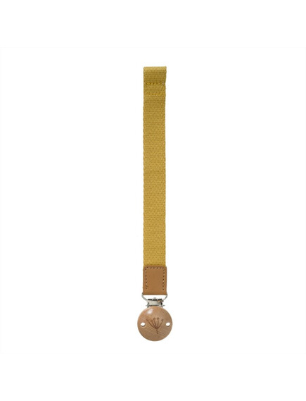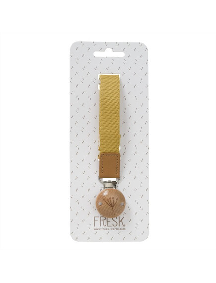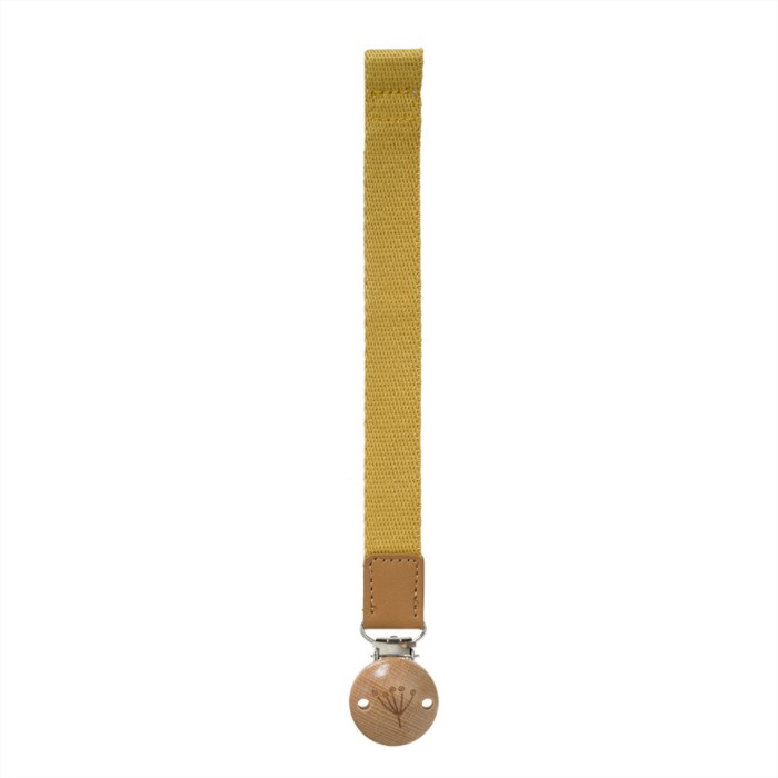 Щипка, украсена с красиво дървено копче от едната страна, за да се захване за дрехите на детето Ви,