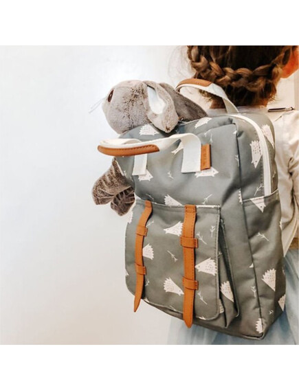 - Раницата има джобове, за да може детето да я подрежда разделно. - Специално отделение за чаша или бутилка с вода. - Предният джоб се затваря с магнит. - Регулируеми презрамки и елементи от изкуствена кожа, които му придават специален вид. - Размери: Малък: 28х21см