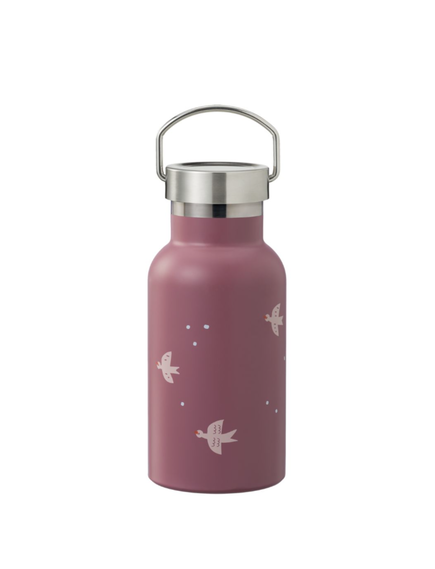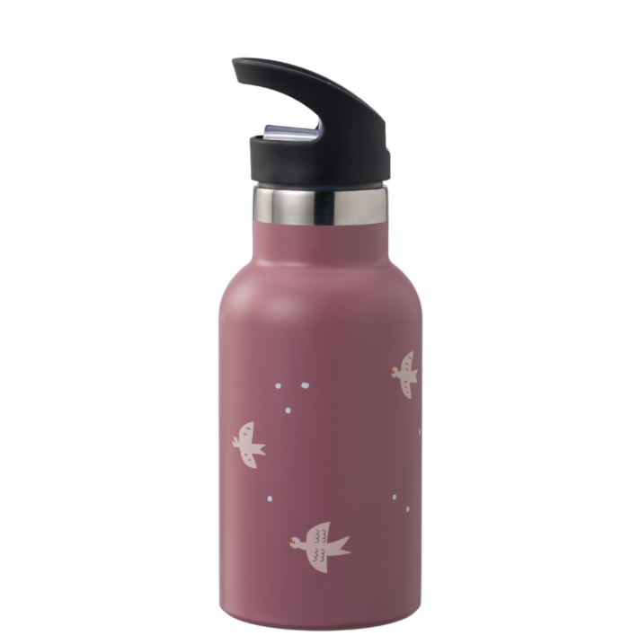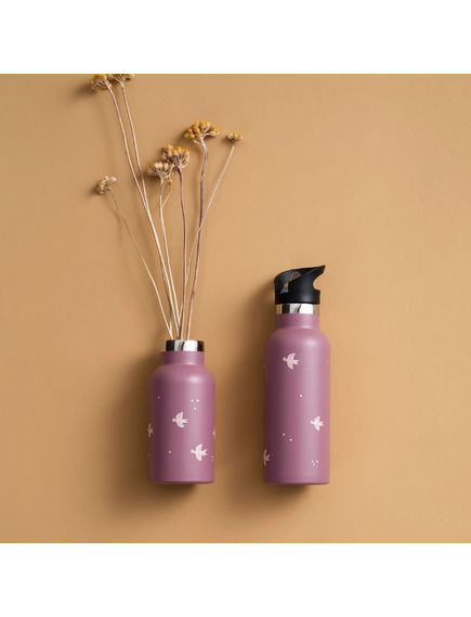 Идеална за деца, бутилката е с вградена сламка. За училище или разходка, с две различни капачки. Тя има двойна стена от неръждаема стомана и държи вашата напитка топла или студена в продължение на много часове.