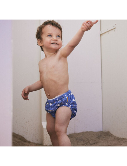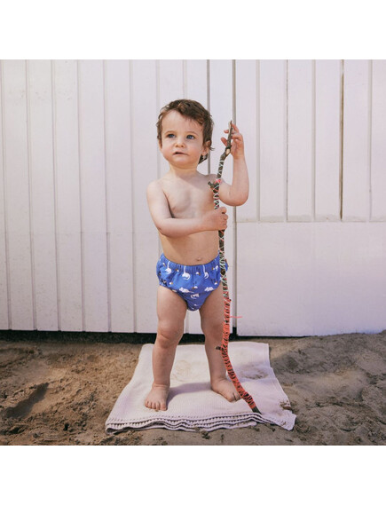 С него плуването и ходенето на плаж става по - спокойно и леко. Благодарение на UV50 защитата, детето Ви е защитено от слънцето, а материалът във вътрешността е мек и абсорбиращ. Произведени са от издръжлив, рециклиран найлон. Ластиците предотвратяват течове и рискът от "инциденти" във водата намалява драстично, но ако все пак желаете да сте 100% сигурни, няма никакъв проблем детето Ви да носи и еднократен памперс за плуване под банския.