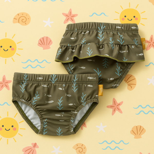 Fresk: Памперс бански с UV50 защита Ocean Green с къдрички
