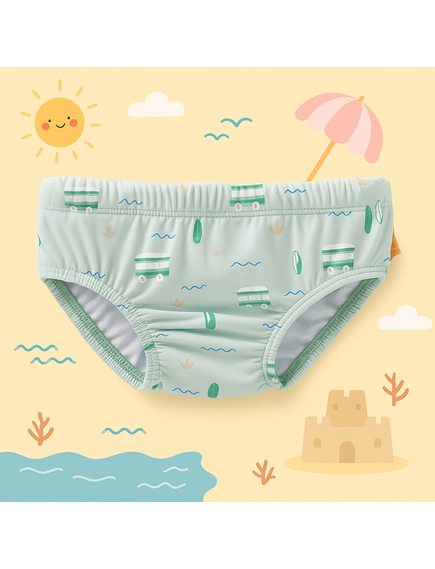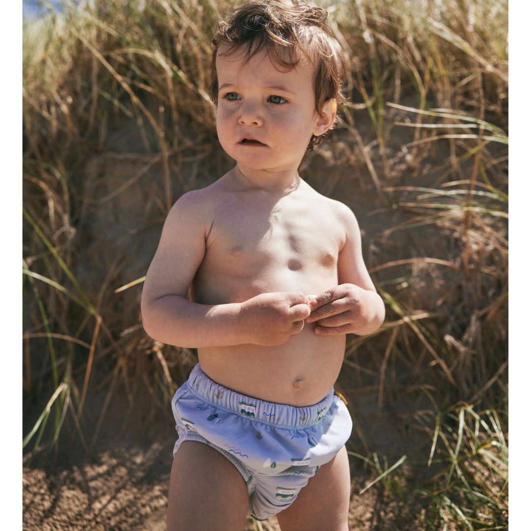 С него плуването и ходенето на плаж става по - спокойно и леко. Благодарение на UV50 защитата, детето Ви е защитено от слънцето, а материалът във вътрешността е мек и абсорбиращ. Произведени са от издръжлив, рециклиран найлон. Ластиците предотвратяват течове и рискът от "инциденти" във водата намалява драстично, но ако все пак желаете да сте 100% сигурни, няма никакъв проблем детето Ви да носи и еднократен памперс за плуване под банския.