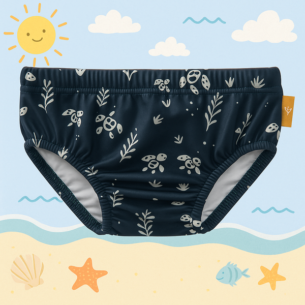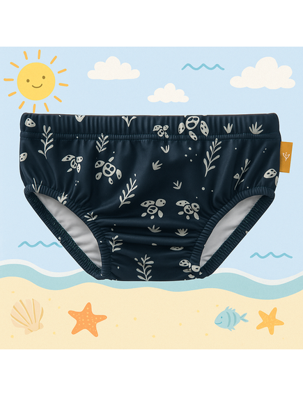 С него плуването и ходенето на плаж става по - спокойно и леко. Благодарение на UV50 защитата, детето Ви е защитено от слънцето, а материалът във вътрешността е мек и абсорбиращ. Произведени са от издръжлив, рециклиран найлон. Ластиците предотвратяват течове и рискът от "инциденти" във водата намалява драстично, но ако все пак желаете да сте 100% сигурни, няма никакъв проблем детето Ви да носи и еднократен памперс за плуване под банския.
