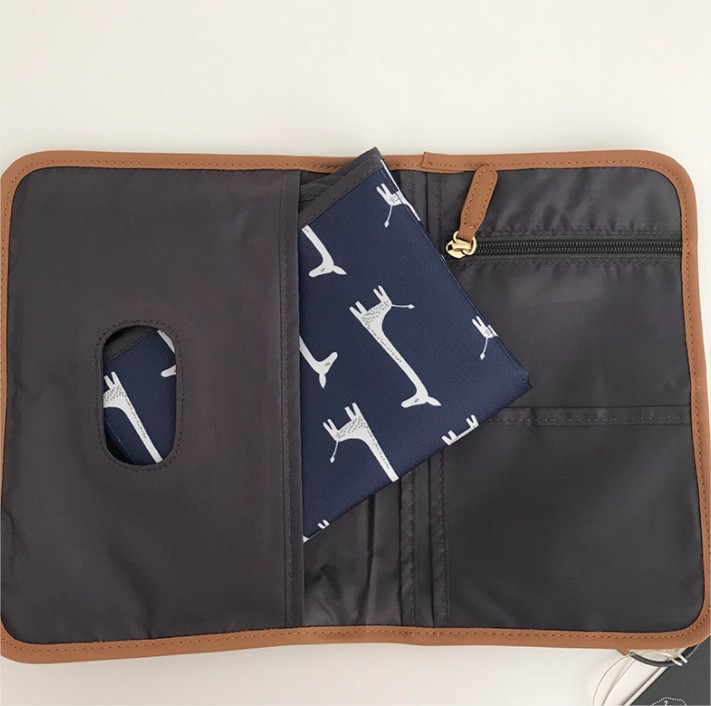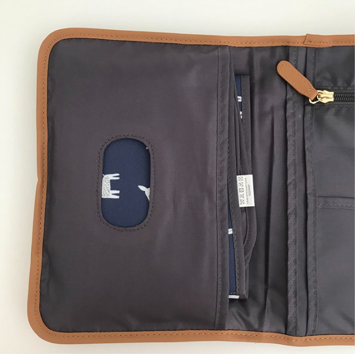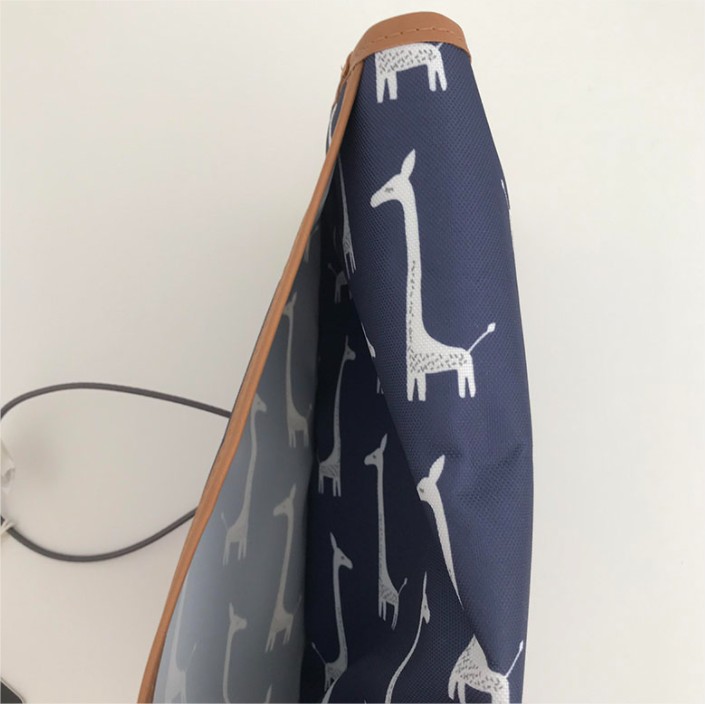 Представлява здрав калъф с ластик за затваряне, така че нищо да не изпадне. При отваряне има подложка за смяна на памперси, два големи джоба и един с цип. Подложката за преобличане се отваря лесно и се сгъва обратно с лекота. Можете лесно да почистите с влажна кърпа.