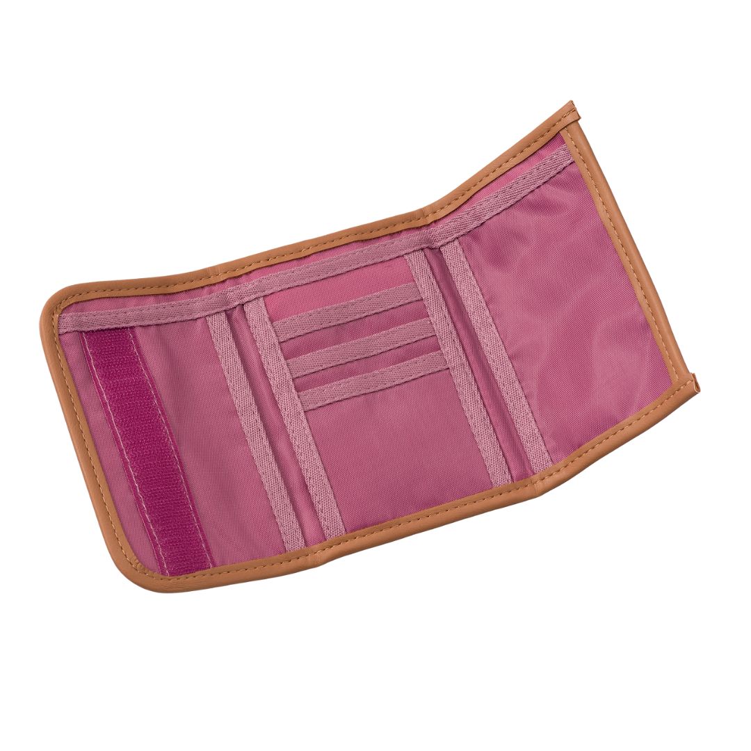Портфейлът се сгъва и се закопчава с велкро, така че да се затвори сигурно и нищо да не изпада отвътре.