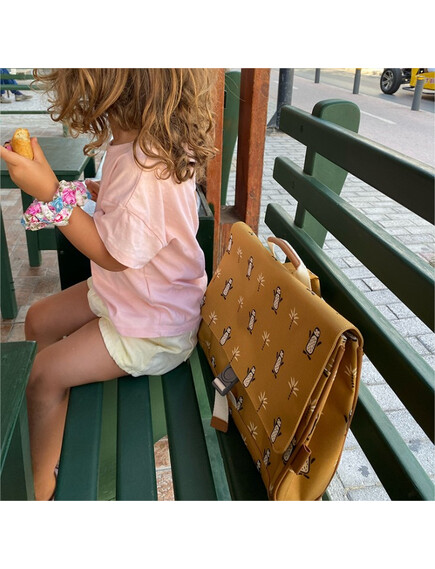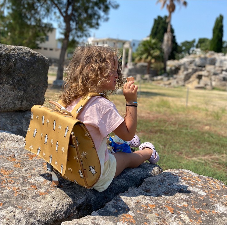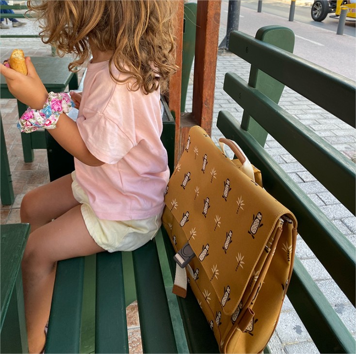 Раницата побира всичко, от което детето има нужда: книги, блокчета за рисуване, моливник, кутия с обяд, бутилка с вода и др.