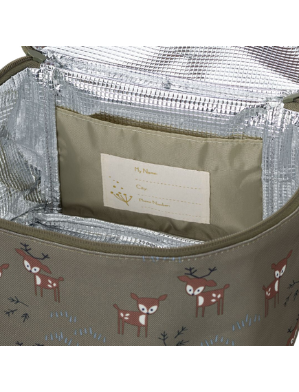 Разполага с голямо пространство за побиране на голямо количество храни и напитки, отделение за прибори и етикет за изписване на името на детето, така че то да може да намери отново своята чанта в случай, че я забрави или изгуби.