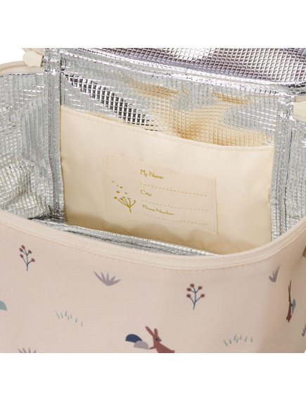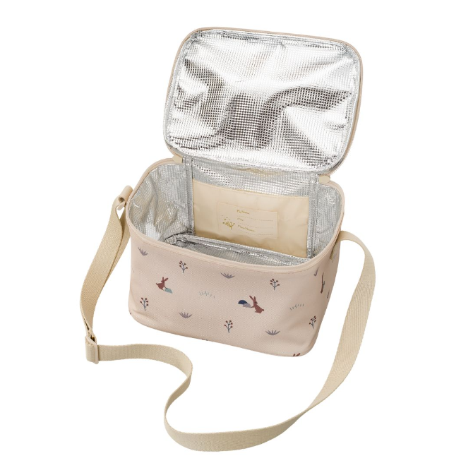 Разполага с голямо пространство за побиране на голямо количество храни и напитки, отделение за прибори и етикет за изписване на името на детето, така че то да може да намери отново своята чанта в случай, че я забрави или изгуби.