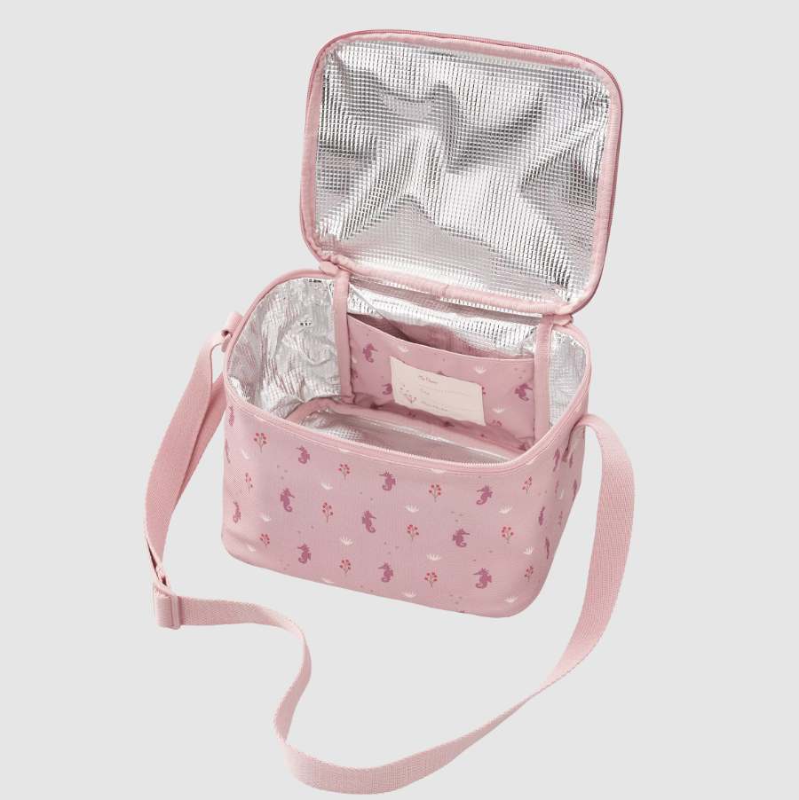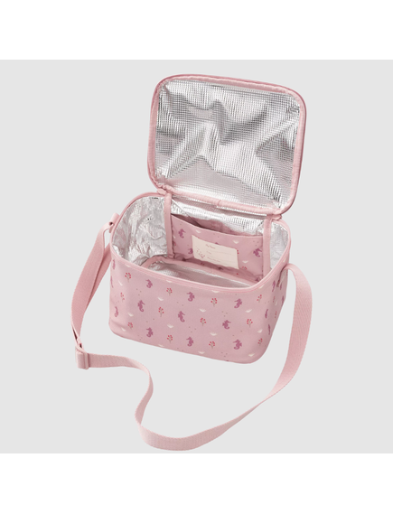 Разполага с голямо пространство за побиране на голямо количество храни и напитки, отделение за прибори и етикет за изписване на името на детето, така че то да може да намери отново своята чанта в случай, че я забрави или изгуби.