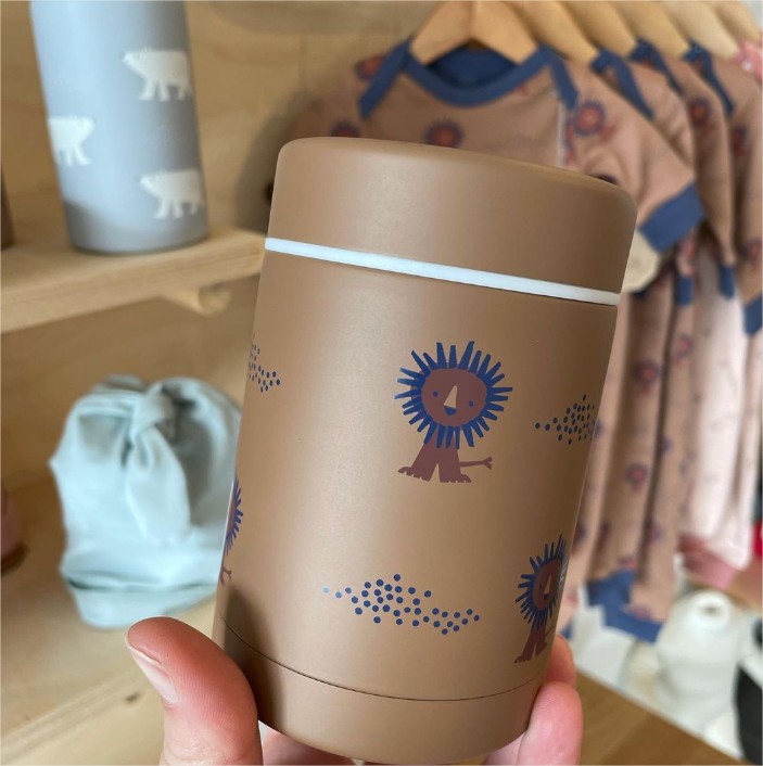 Този хубав буркан - термос е идеален за вземане на малки храни или каши с вас по време на обиколка.