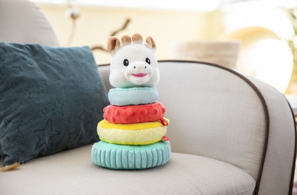 Плюшената пирамида на Софи се състои от 3 пръстена от пяна с различни размери, много мека текстура, лесна за задържане и игра!