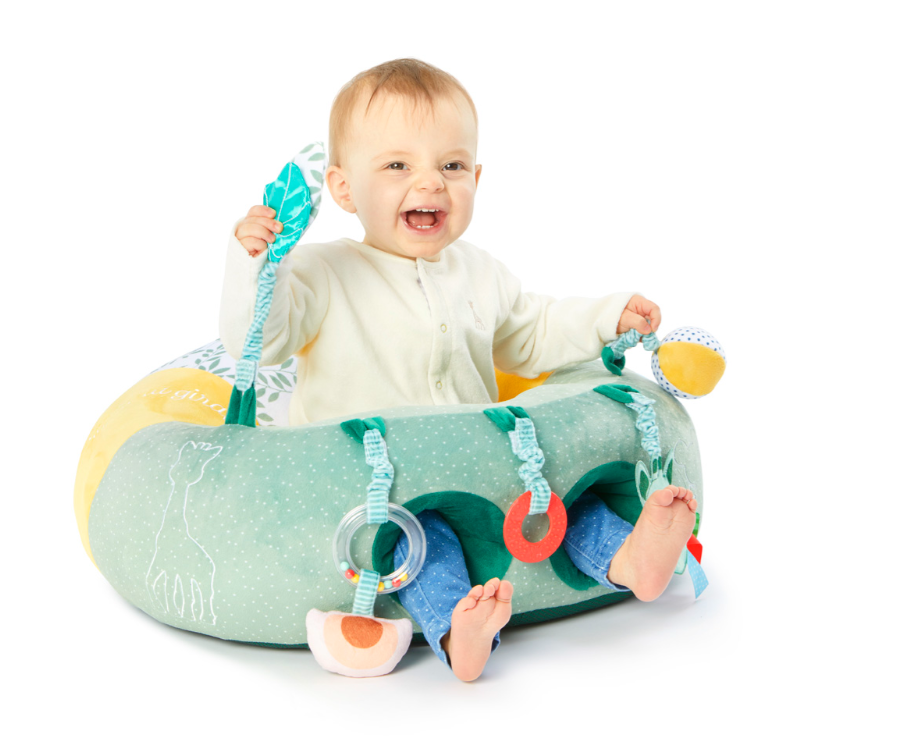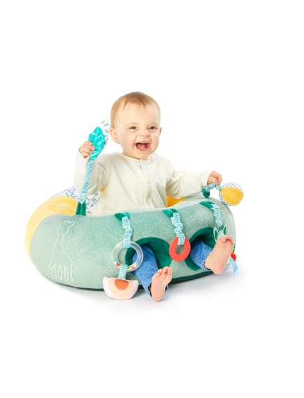 Пуфа ще се превърне в първото любимо бебешко "столче", което комбинира комфорт и сензорна стимулация! Със своите подвижни аксесоари, пуфа на Sophie предлага на бебето много комбинации за игра. В същото време е мек и нежен и държи бебето в удобна и безопасна позиция.