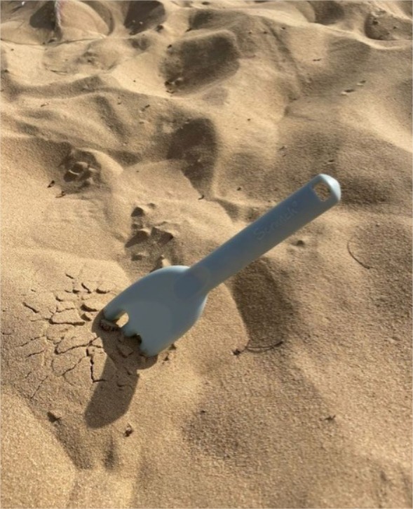 Изработено от рециклируем полипропилен и с размери 21 см дължина х 4,5 см ширина в най-широката му част.