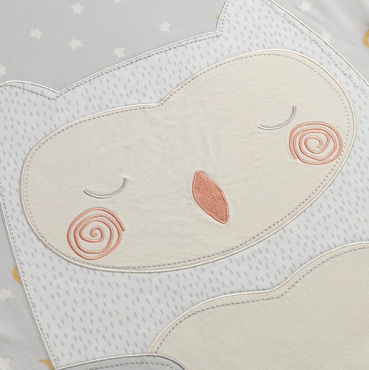 Олекотеният плат е идеален за помещения с температура около 16-20°C, а страничният цип се отваря от долу нагоре, което прави смяната на пелени по-лесна, без да безпокоим детето.