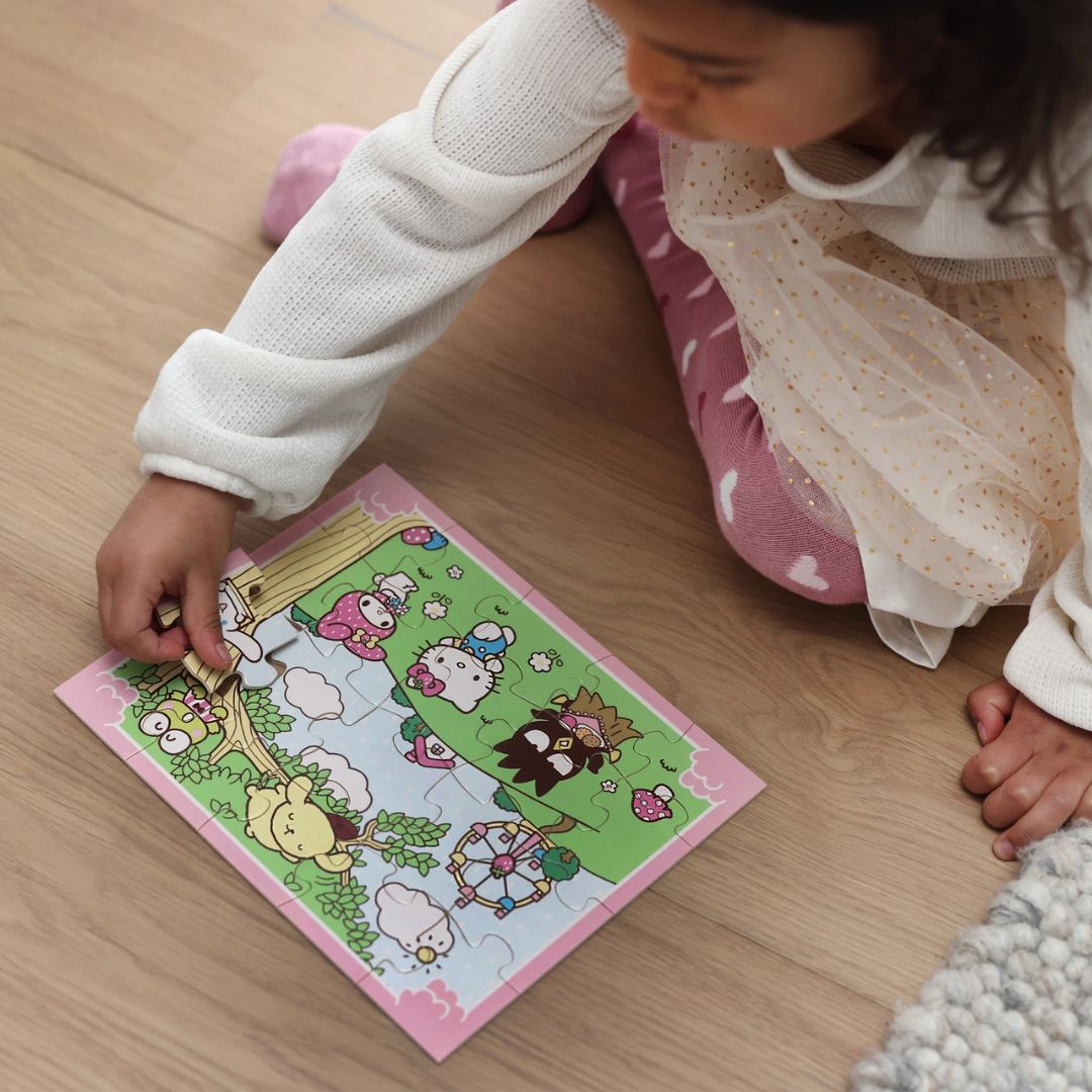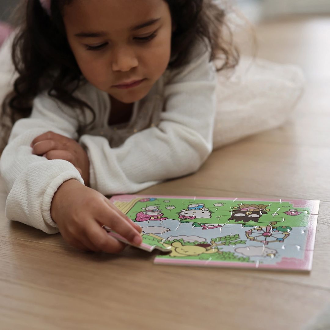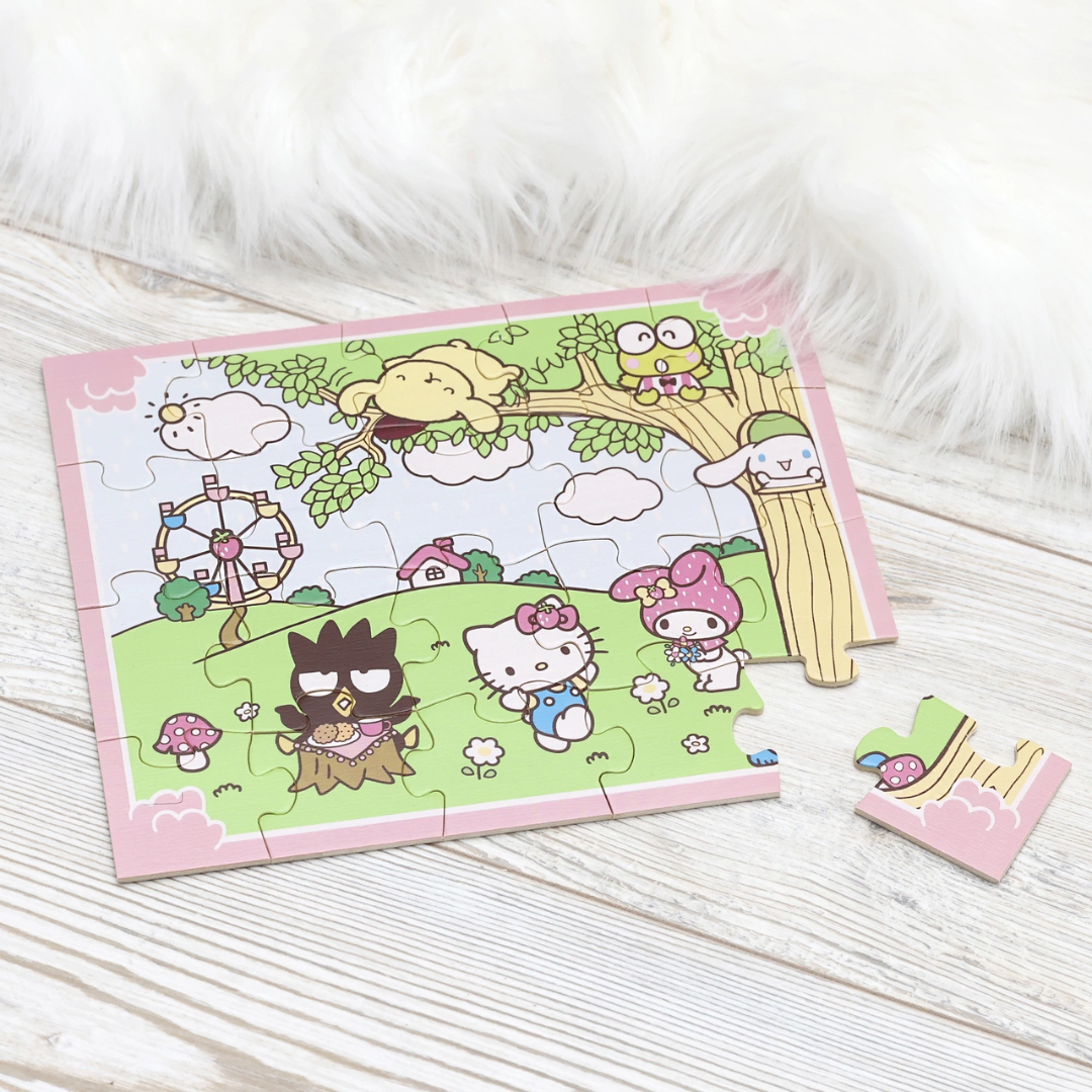 С Hello Kitty и нейната весела компания, този дървен пъзел ще се превърне в любимо занимание на мъниците.