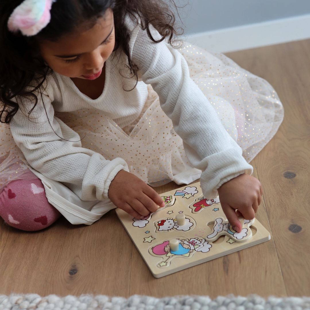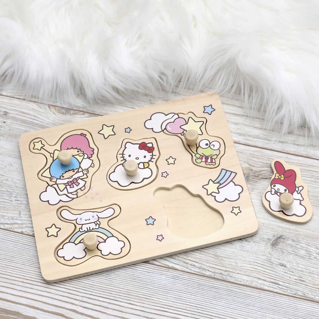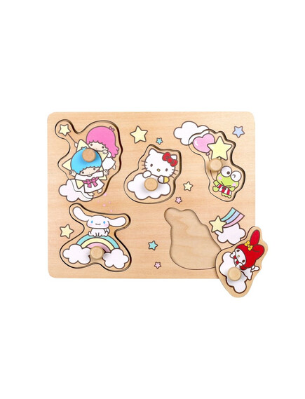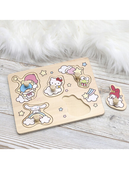 С Hello Kitty и нейната весела компания, този дървен пъзел ще се превърне в любимо занимание на мъниците.