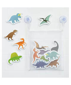 Една страхотна игра за баня , което сме сигурни, че ще очарова вашето дете, особено ако е любител на динозаврите! Украсете душа или ваната, докато се къпете. Оставете вашето дете да потопи динозаврите във водата и след това да ги залепи към стената, плочките или едно към друго ....
