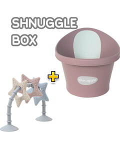 Shnuggle Box – Перфектният старт за всяко бебе! Сензорна Арка с Вендузи – Игра навсякъде! Закрепя се сигурно върху всякакви гладки повърхности – столчета, вани, маси, дори в самолета! Съдържа 3 текстурирани силиконови звезди , идеални за облекчаване на дискомфорта при...