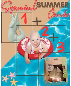 Комбо съдържащо - Обучителен пояс SWIMTRAINER + Играчки за игра с вода Най-безопасният старт за плуване на вашето бебе Комбо за родители, които искат радост във водата и на плажа: Swimtrainer Classic (червен) – обучителен пояс за бебета 3 м.–4 г. Силиконова лейка...